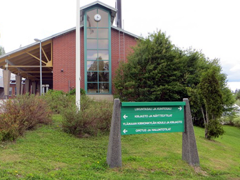 Ylämaan palveluita. Kuvassa yhdistetty koulu- ja kirjastorakennus